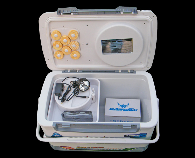 特點(diǎn):快速投入口、內(nèi)置方盒、背帶、旋轉(zhuǎn)出水口、便于夜釣